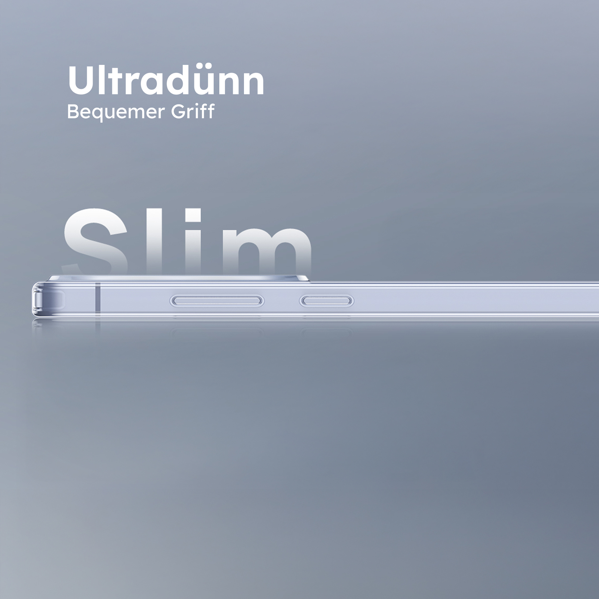 Materialstärke von nur 1-2 mm, kristallklar und ideal für den täglichen Einsatz: leicht, griffig und kompatibel mit kabellosem Laden - auch mit Hülle.